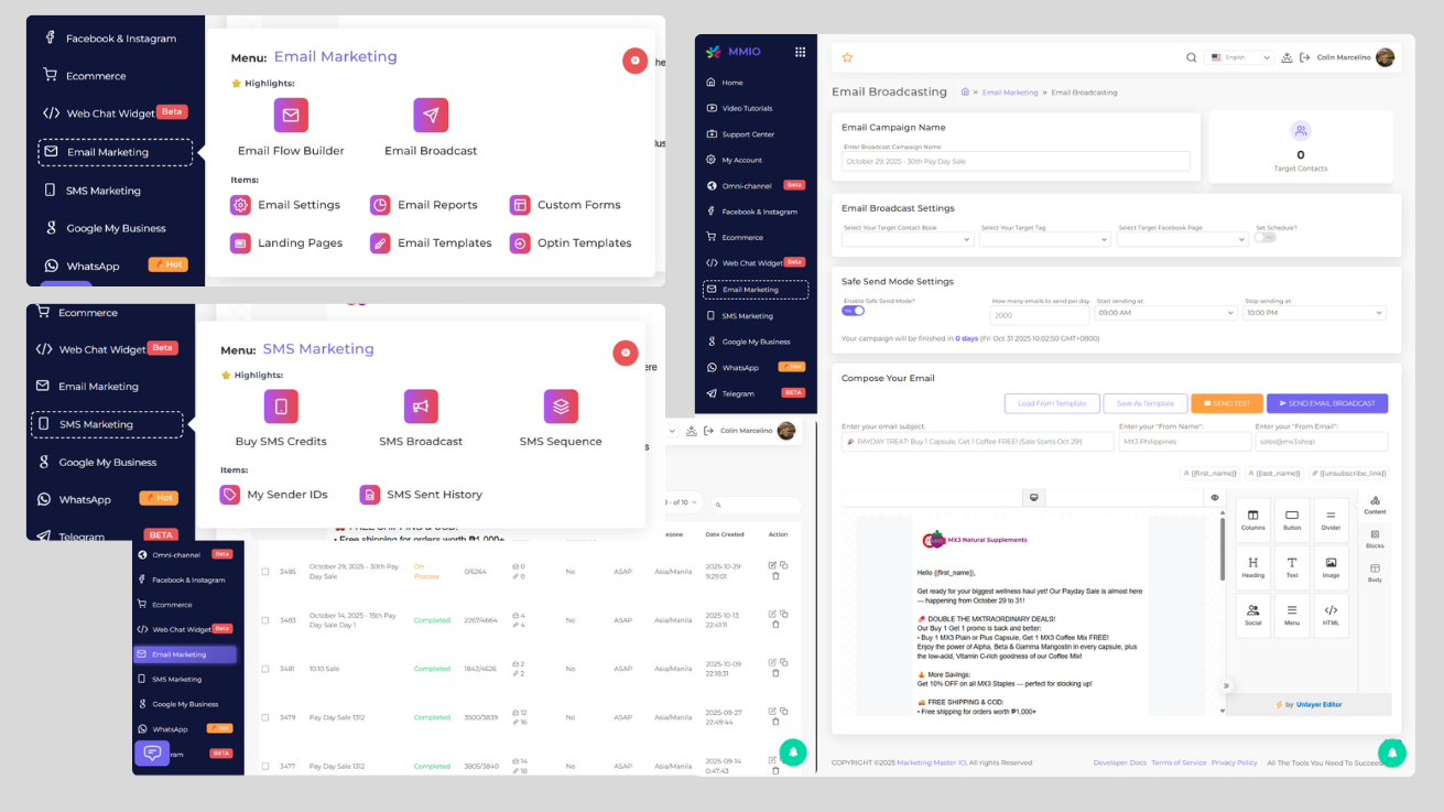 From beautifully crafted newsletters to high-impact SMS broadcasts, MMIO helps you automate, personalize, and measure every campaign effortlessly. With drag-and-drop builders, scheduling tools, and performance tracking, you can engage customers at the right moment — across multiple channels — all in one platform.